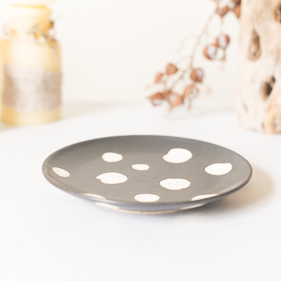 沖縄の自然と伝統を現代的な感性で表現する「陶factory509」がお届けする、シンプルで洗練されたデザインが特徴のモノクロ皿。陶factory509は、陶芸家・冨山進と盛舛容子の夫婦ユニットが手掛ける、沖縄の伝統工芸「やちむん」の魅力を伝える作品です。