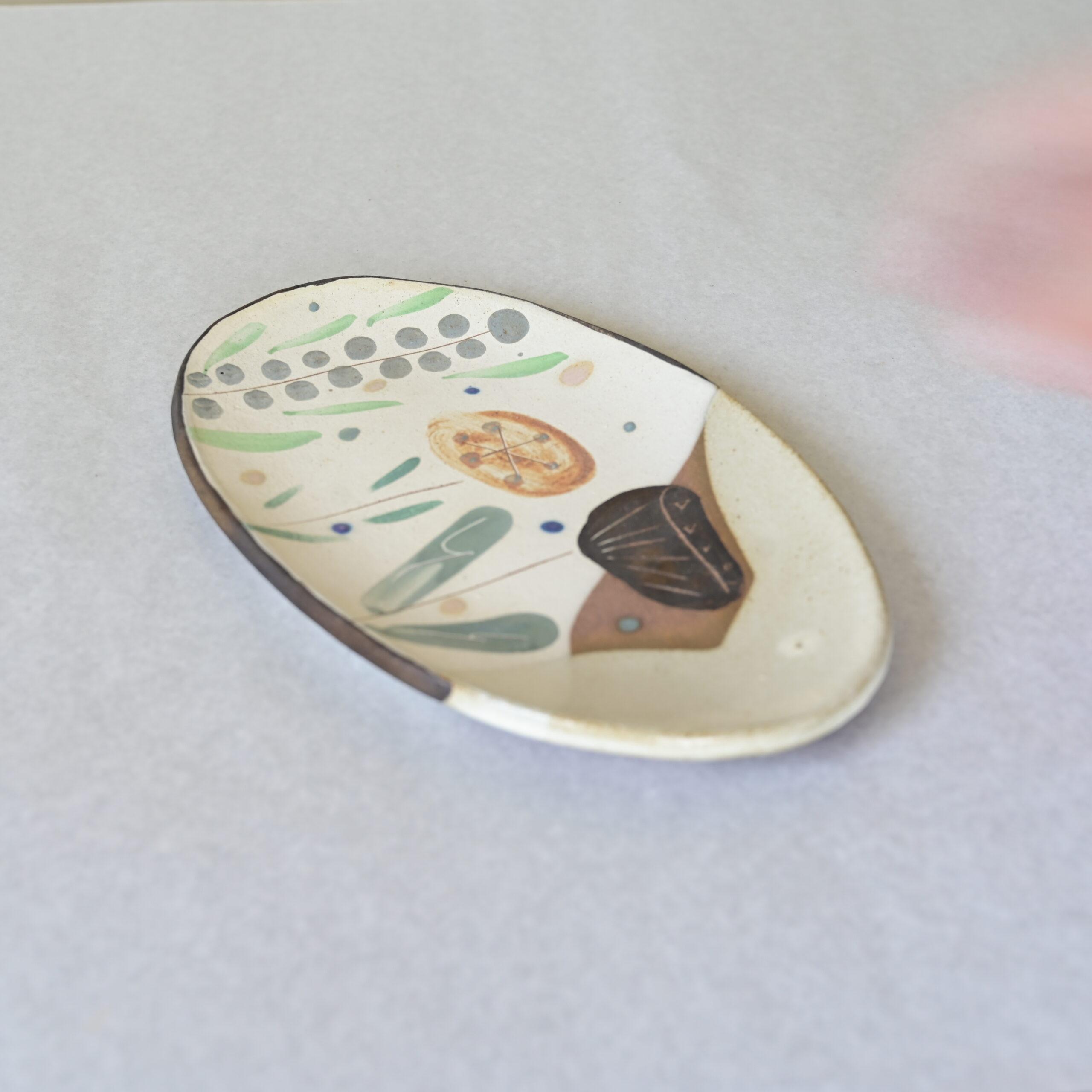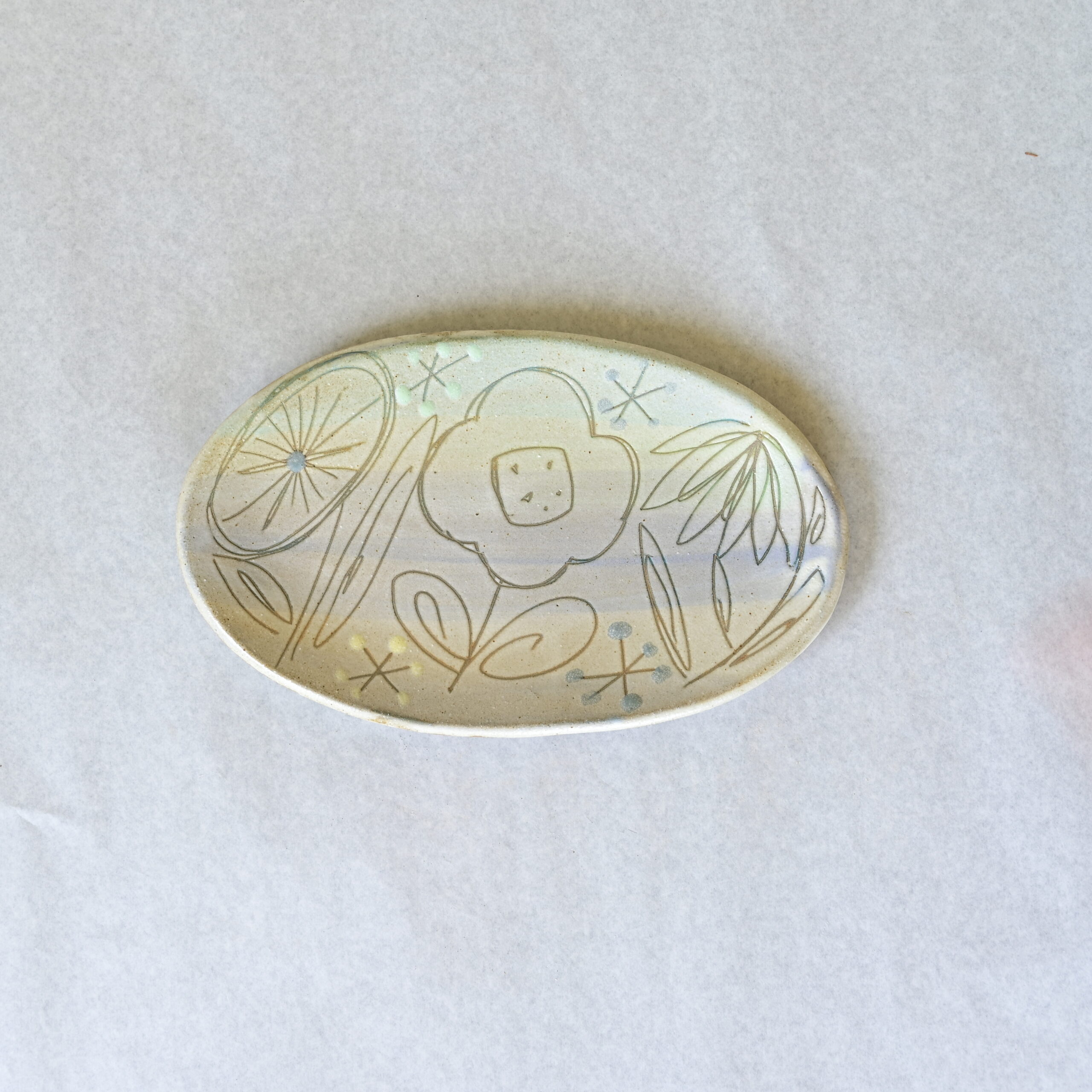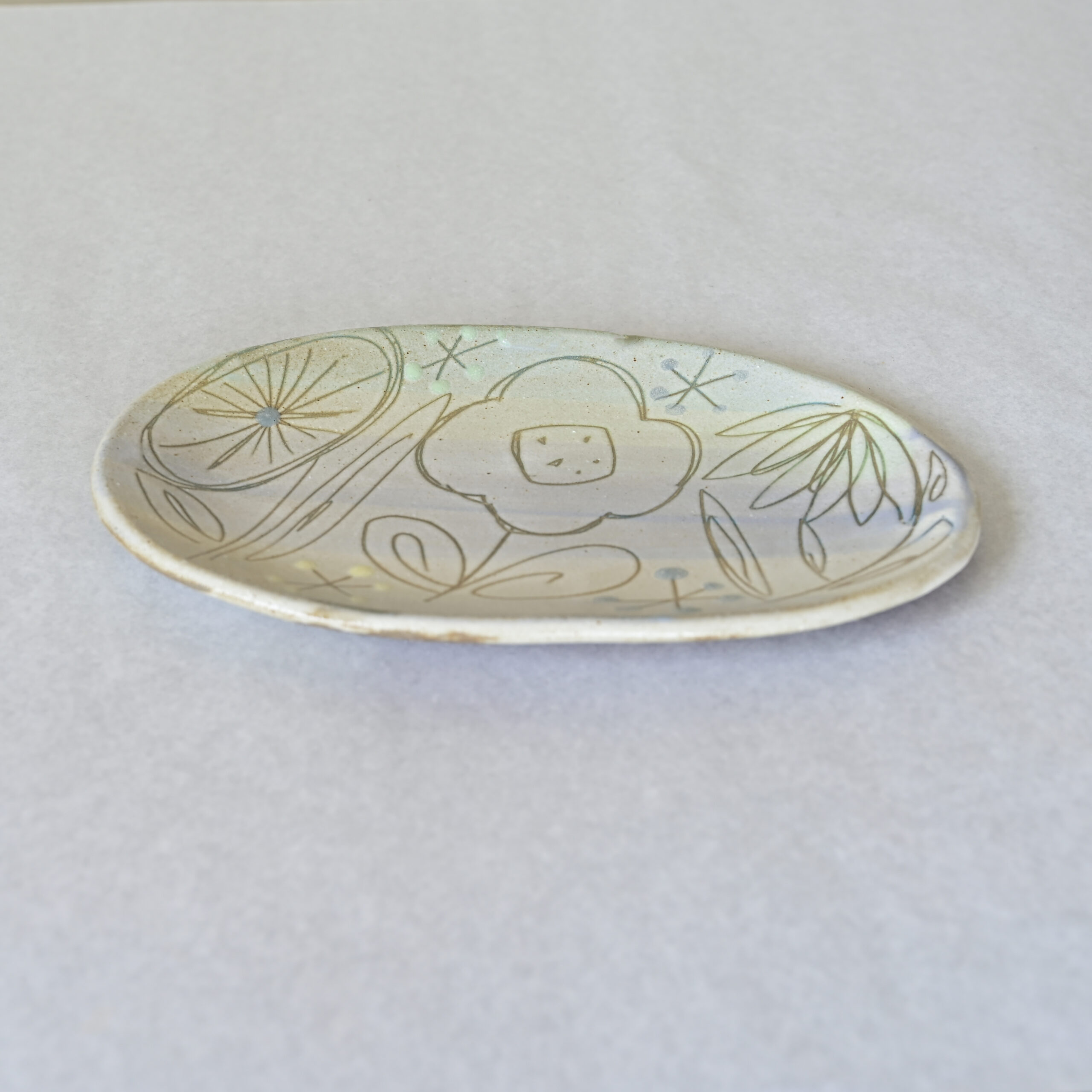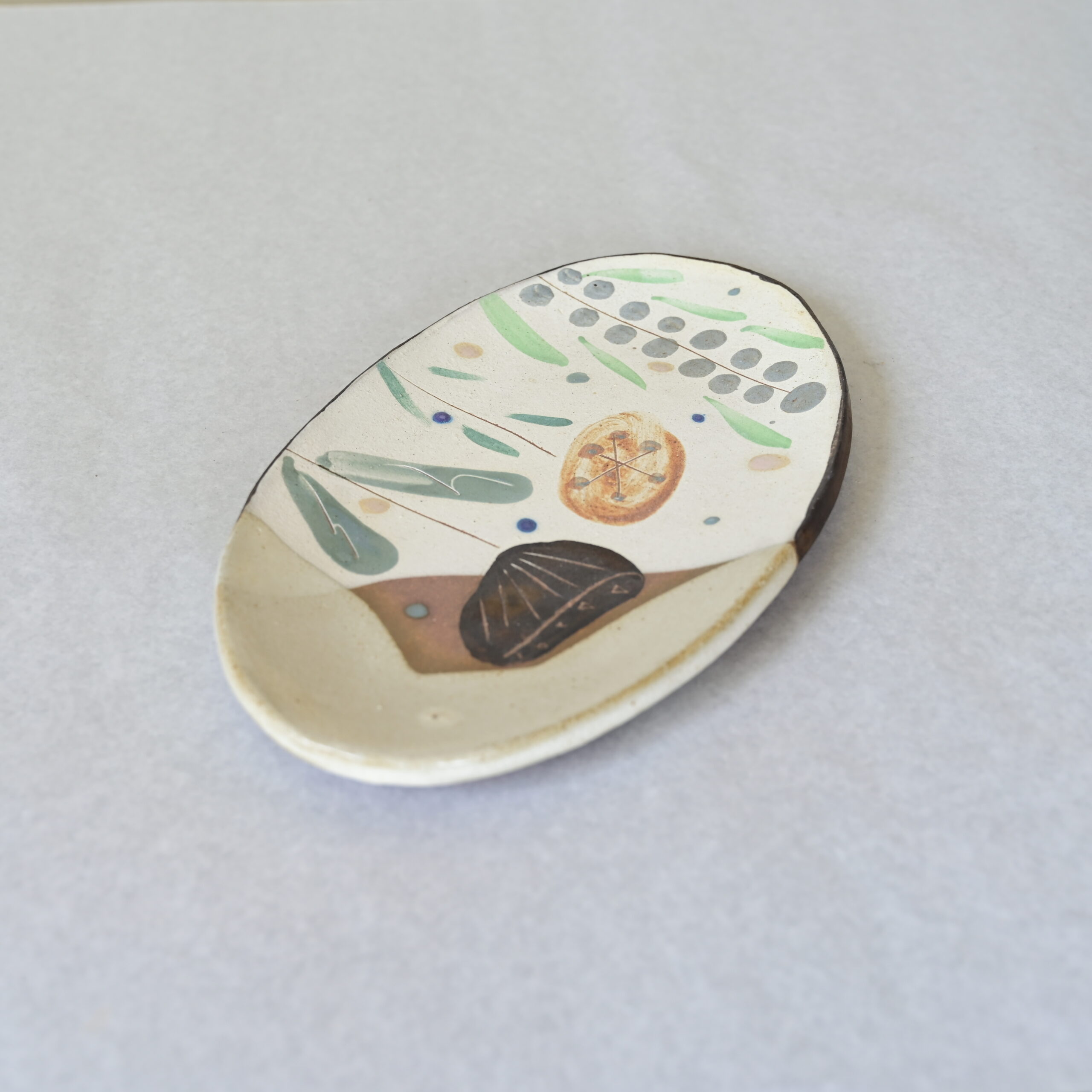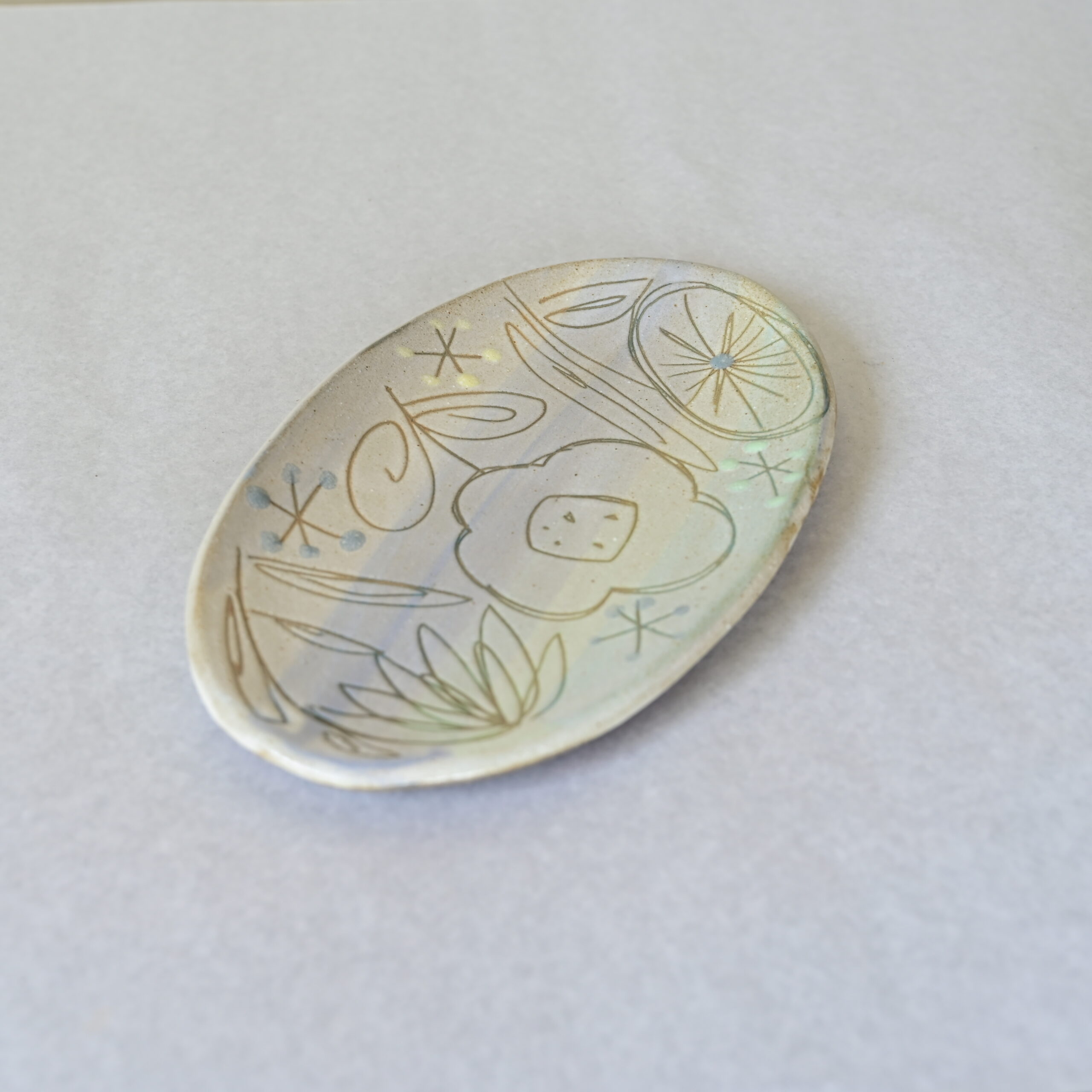 〈沖縄のやちむん〉オーバル皿|一点ものの手描きプレート