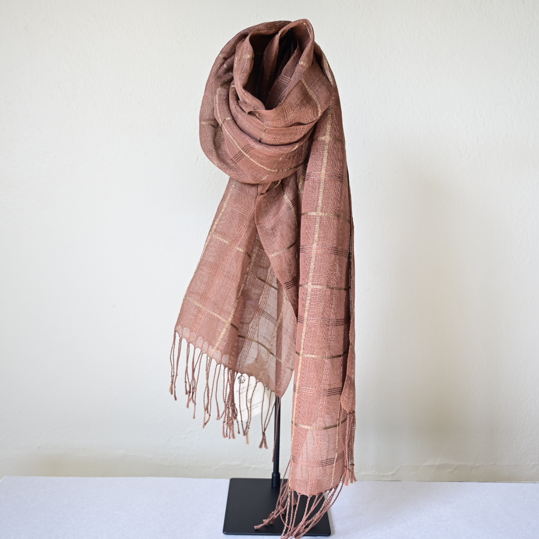 草木染め手織りストール – 吉野格子 by 染と織 樹庵