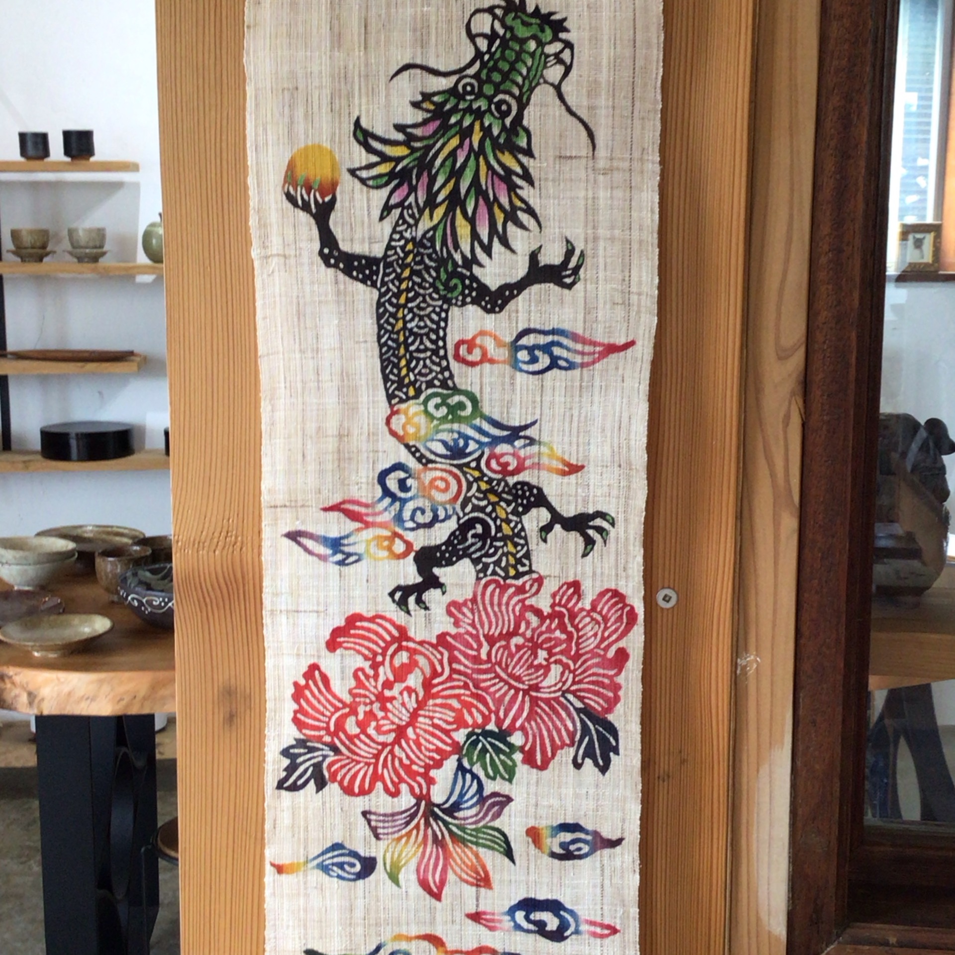 紅型デザイン工房ten天の「タペストリー 牡丹龍」|伝統と力強さが調和する紅型アート