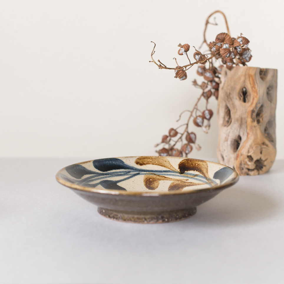 このリム皿は直径約24cmと程よいサイズ感で、主菜やパスタ、デザートまで幅広く活用可能。縁の立ち上がりが料理を引き立て、盛り付けの美しさを際立たせます。また、手触りからも伝わる温かみのあるやちむんの質感が、沖縄の風土と伝統を感じさせてくれます。