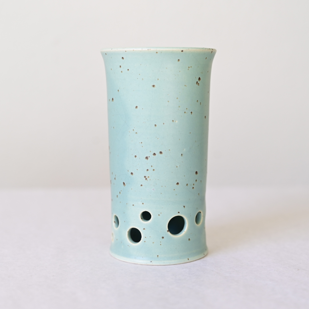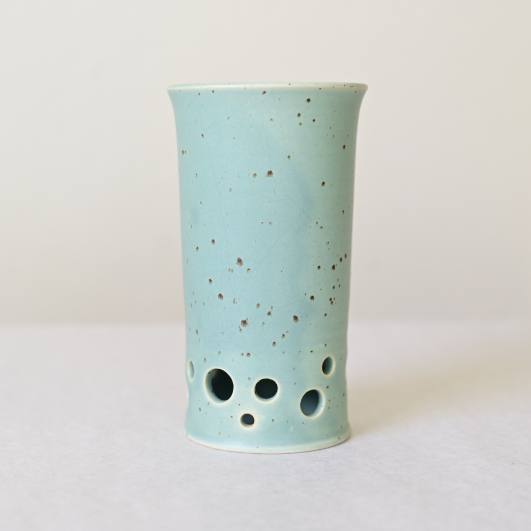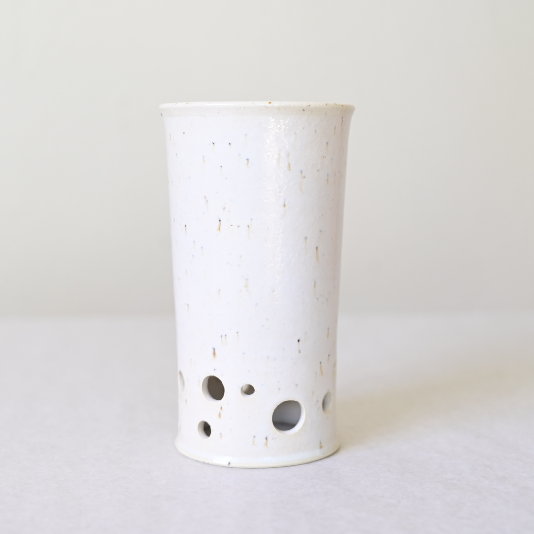 手仕事による焼き物です。釉薬のムラ・鉄点・貫入(細かなヒビ模様)、穴の配置や大きさには個体差があります。それぞれが唯一の表情としてお楽しみください。