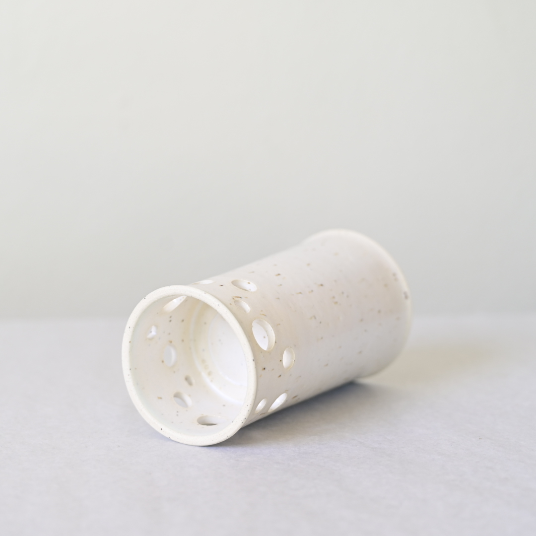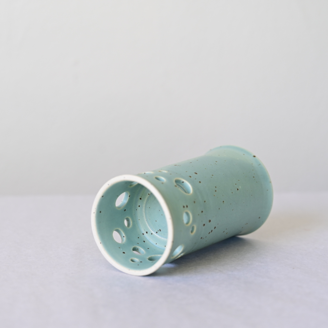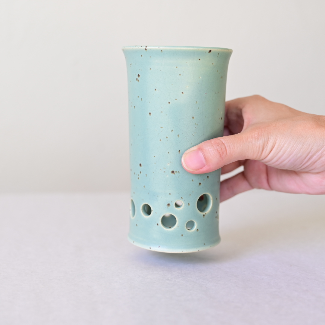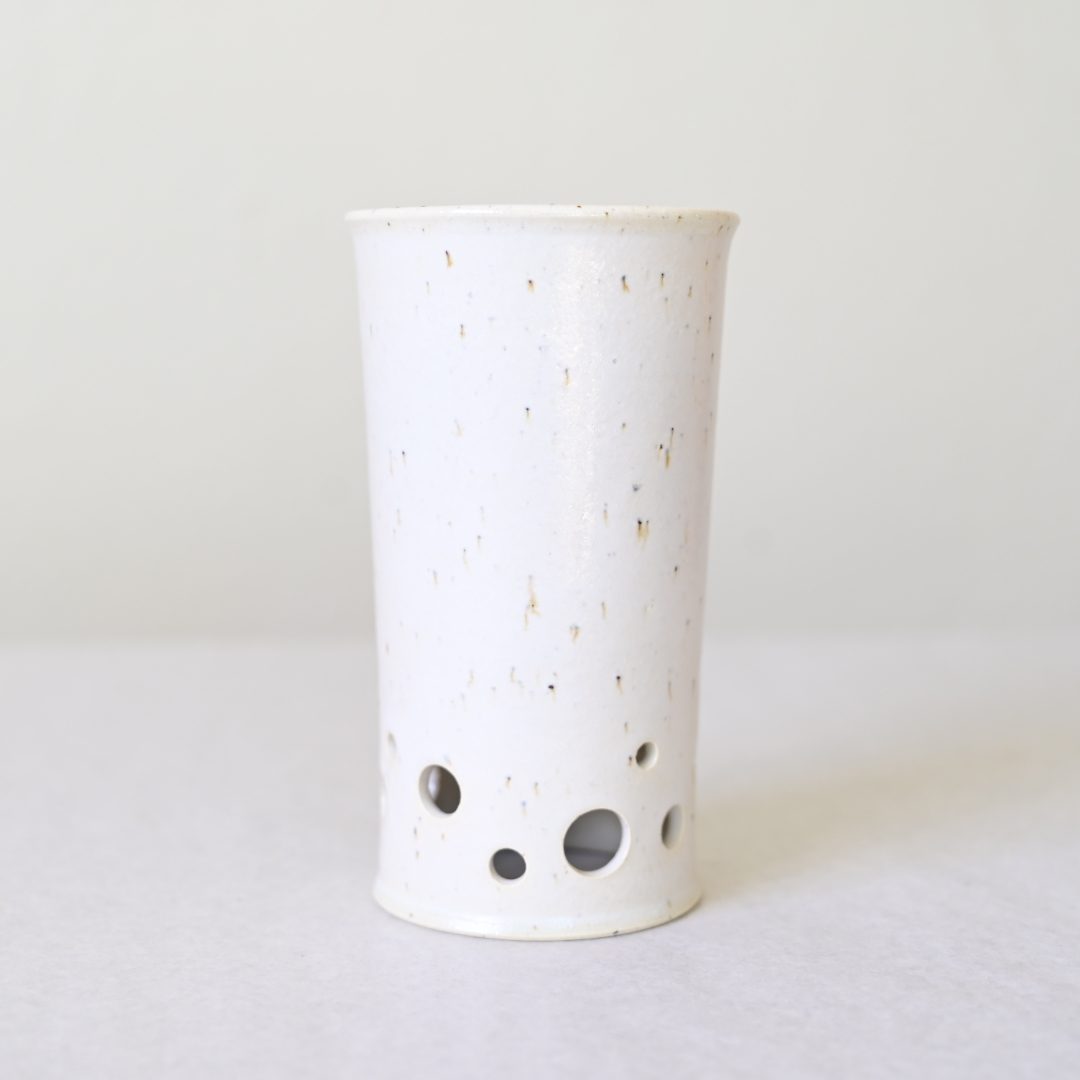 手仕事による焼き物です。釉薬のムラ・鉄点・貫入(細かなヒビ模様)、穴の配置や大きさには個体差があります。それぞれが唯一の表情としてお楽しみください。