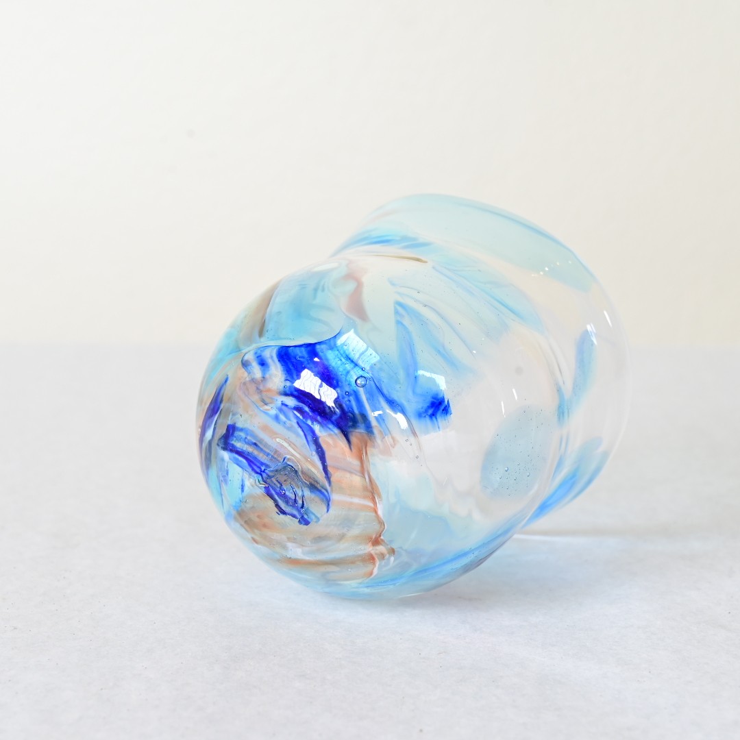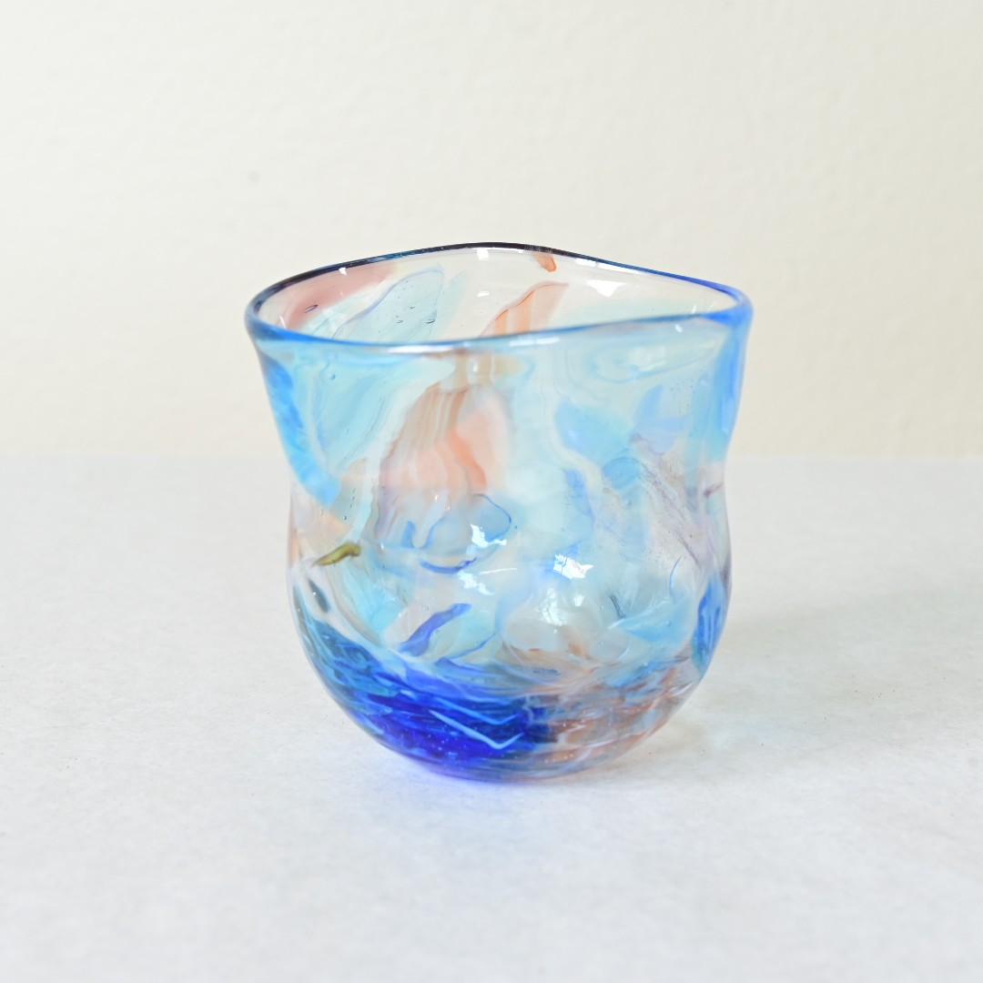 琉球ガラス制作の過程で生まれるガラスの「カケラ」を再利用し、 それぞれを組み合わせることで生まれた、表情豊かなグラスです。