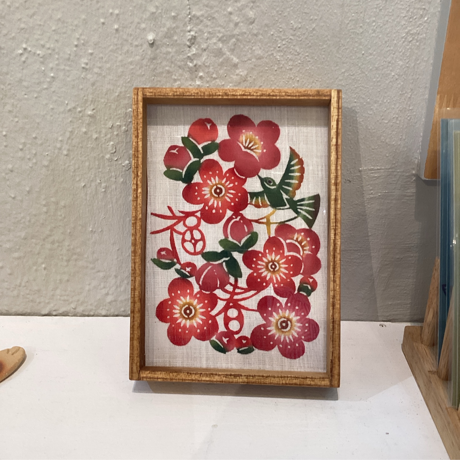 紅型デザイン工房ten天の「額絵 福梅」|紅型の伝統技術が映える縁起物アート