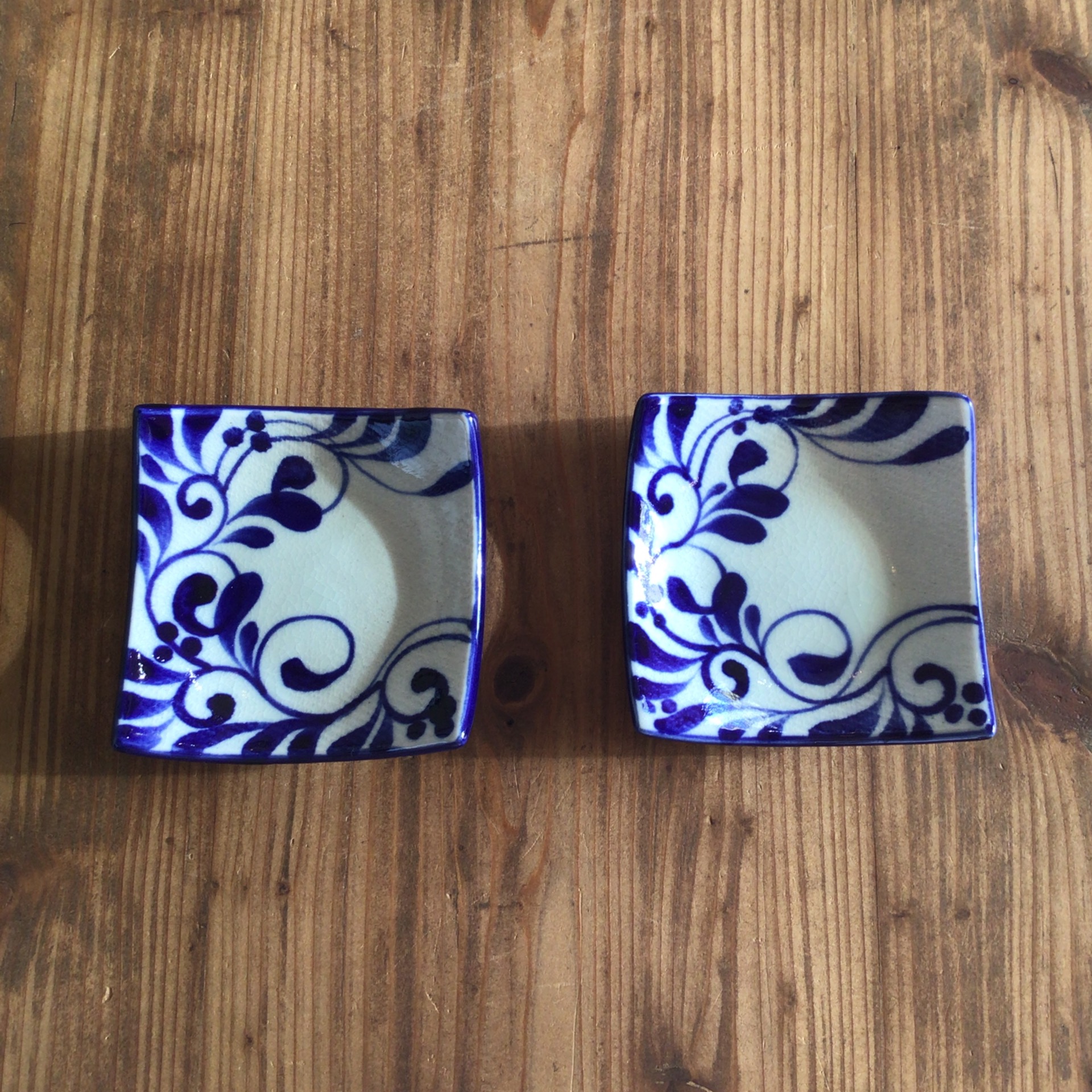 沖縄に工房を構える眞正陶房によるアラベスク(唐草)模様の四角皿。