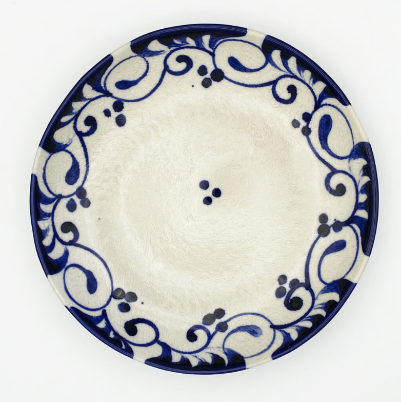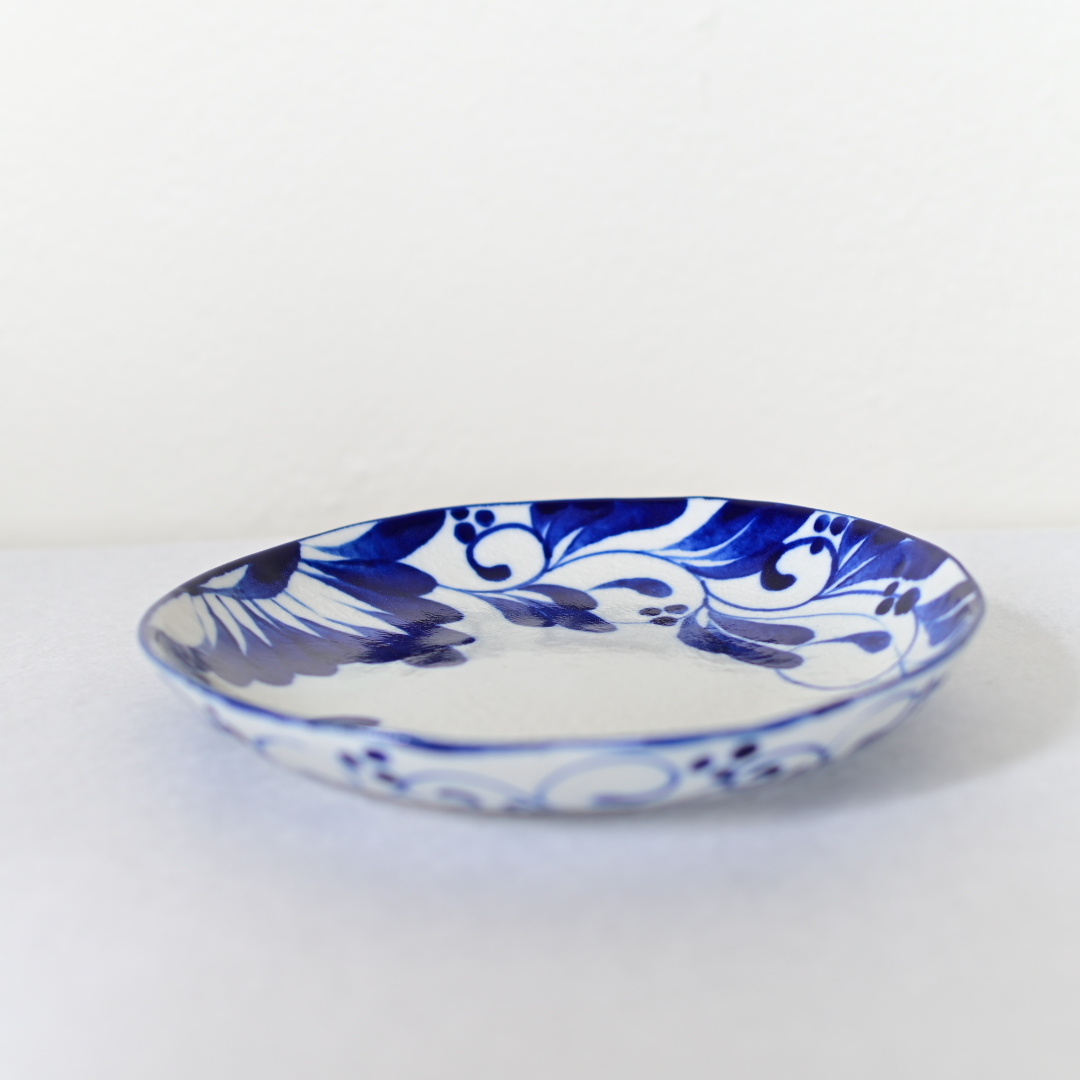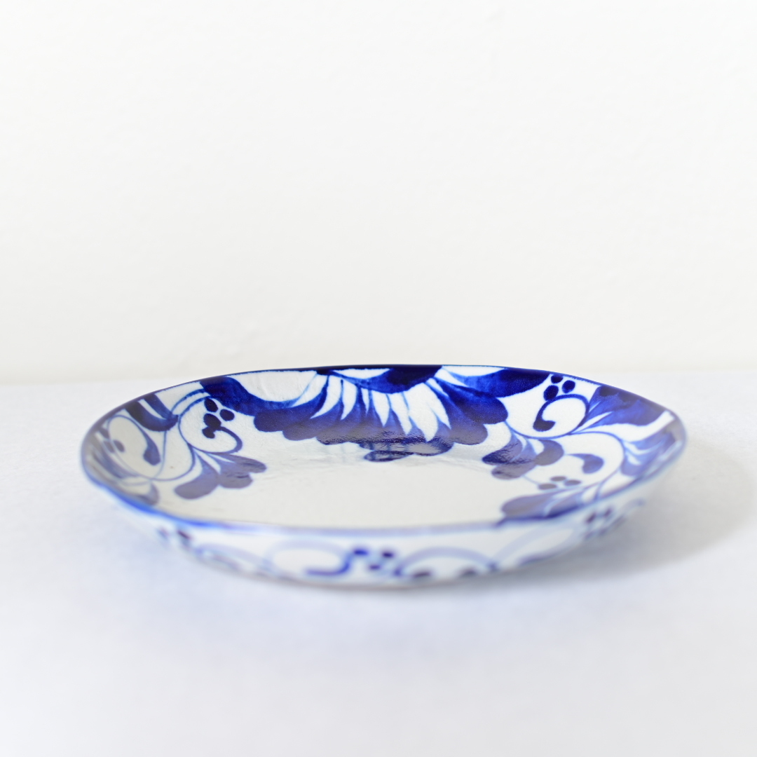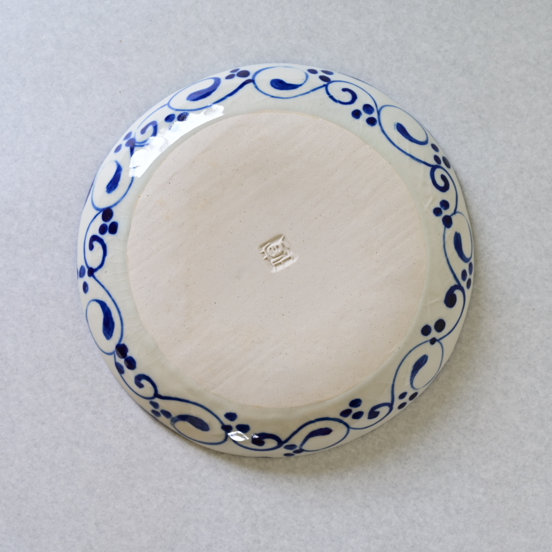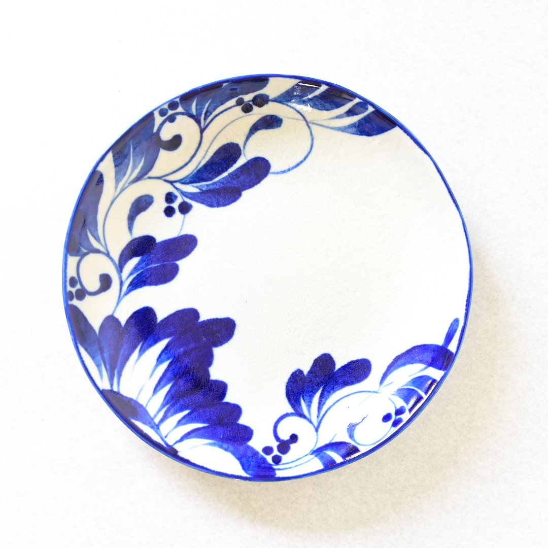 シンプルな白とコバルトの色彩は、サラダやパスタ、カレーなど様々な料理を引き立たせてくれる魔法の一枚です。